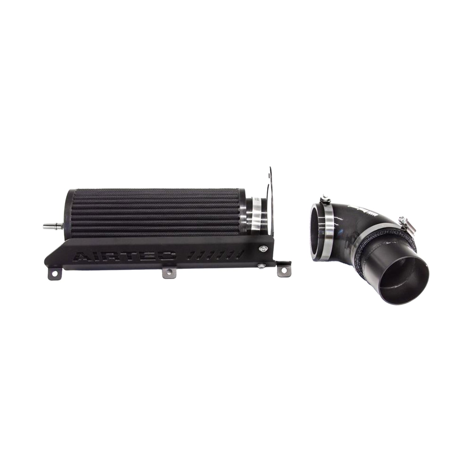 The kit features a huge, free-flowing cotton air filter, replacement intake pipe, Pro Hoses silicone connector and laser cut mounting bracket all finished in a high quality and long lasting powder coat black finish. To ensure the new air filter suffers less with heat soak issues from the confines of the engine bay, the laser cut shield complete with AIRTEC logo provides a barrier from the heat of the engine.