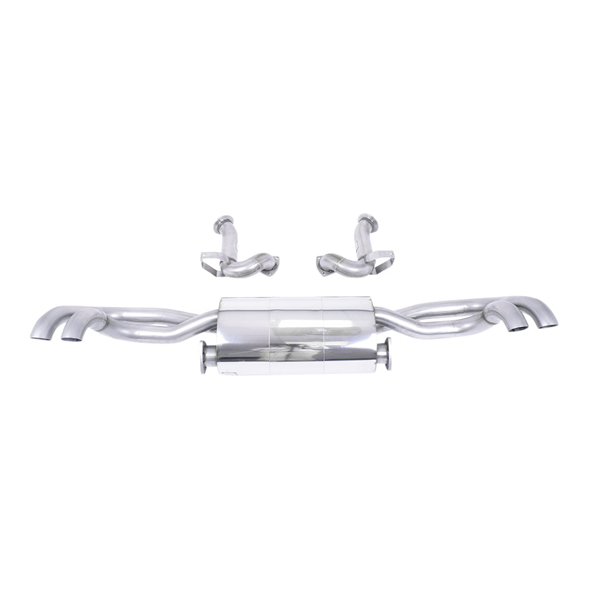 Removes secondary catalysts - Non-resonated . Uses OEM tailpipe trims